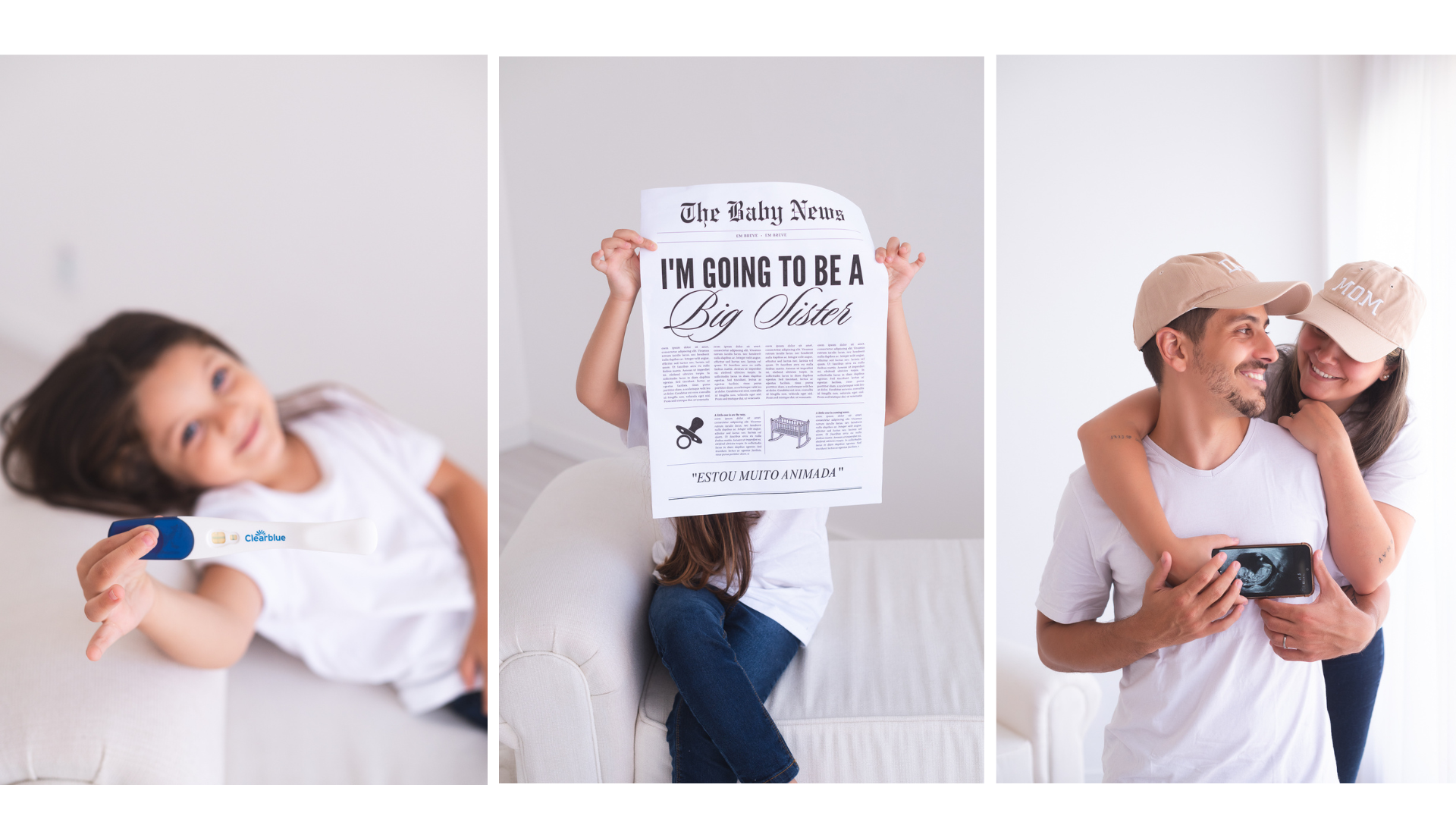 Nosso estilo fotográfico é clean, com cores claras. Damos sempre preferência ao branco, ou branco e jeans, bege, cores neutras. Toda a família na mesma cor, para harmonizar nossas fotos.