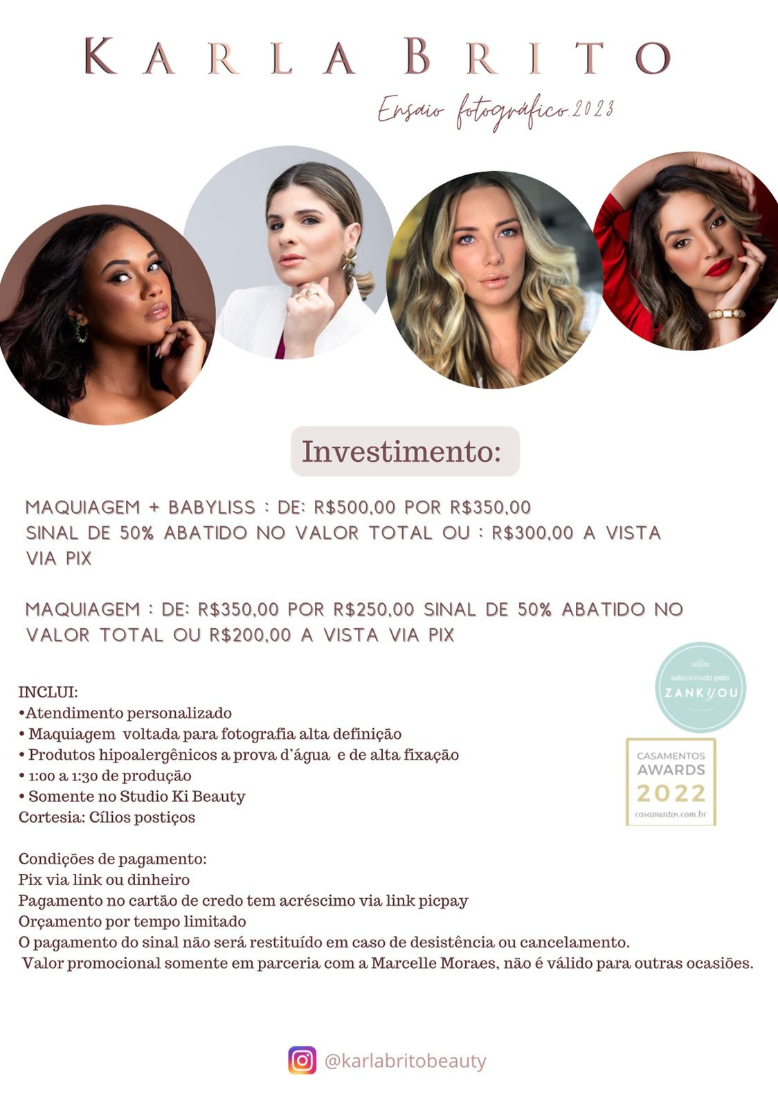 *Pagamento à vista: 30% no ato do contrato e o restante em até uma semana antes do ensaio.
